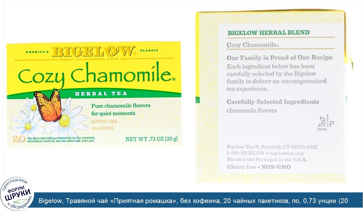 Друзья, если у вас есть отзыв/дополнение/комментарий/вопрос относительно Bigelow, Травяной чай «Приятная ромашка», без кофеина, 20 чайных пакетиков, по, 0,73 унции (20 г) каждый - напишите его ответом в эту тему (это будет полезно всему сообществу в целом и вам в отдельности).