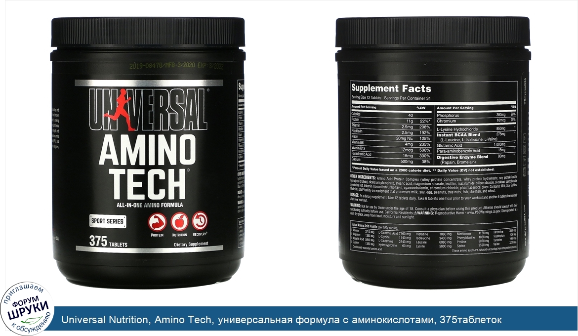Друзья, если у вас есть отзыв/дополнение/комментарий/вопрос относительно Universal Nutrition, Amino Tech, универсальная формула с аминокислотами, 375таблеток - напишите его ответом в эту тему (это будет полезно всему сообществу в целом и вам в отдельности).