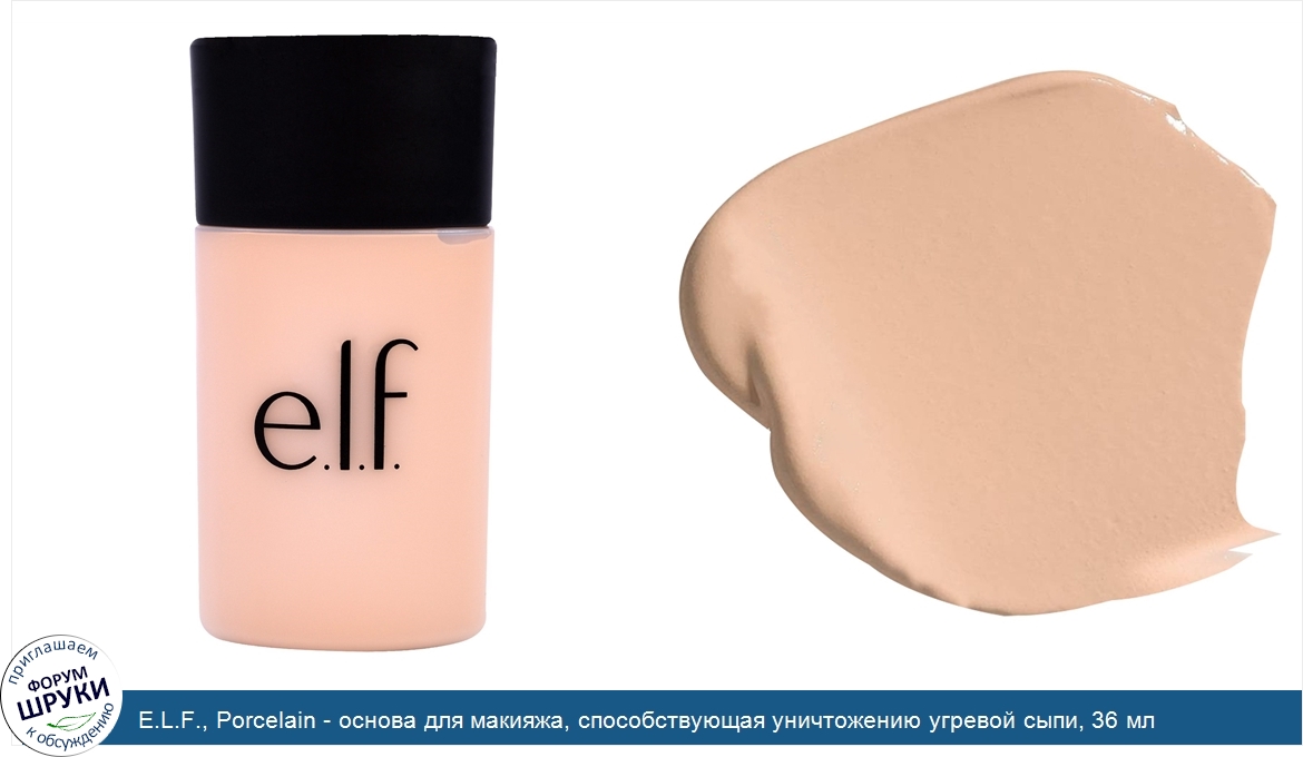 Друзья, если у вас есть отзыв/дополнение/комментарий/вопрос относительно E.L.F., Porcelain - основа для макияжа, способствующая уничтожению угревой сыпи, 36 мл - напишите его ответом в эту тему (это будет полезно всему сообществу в целом и вам в отдельности).