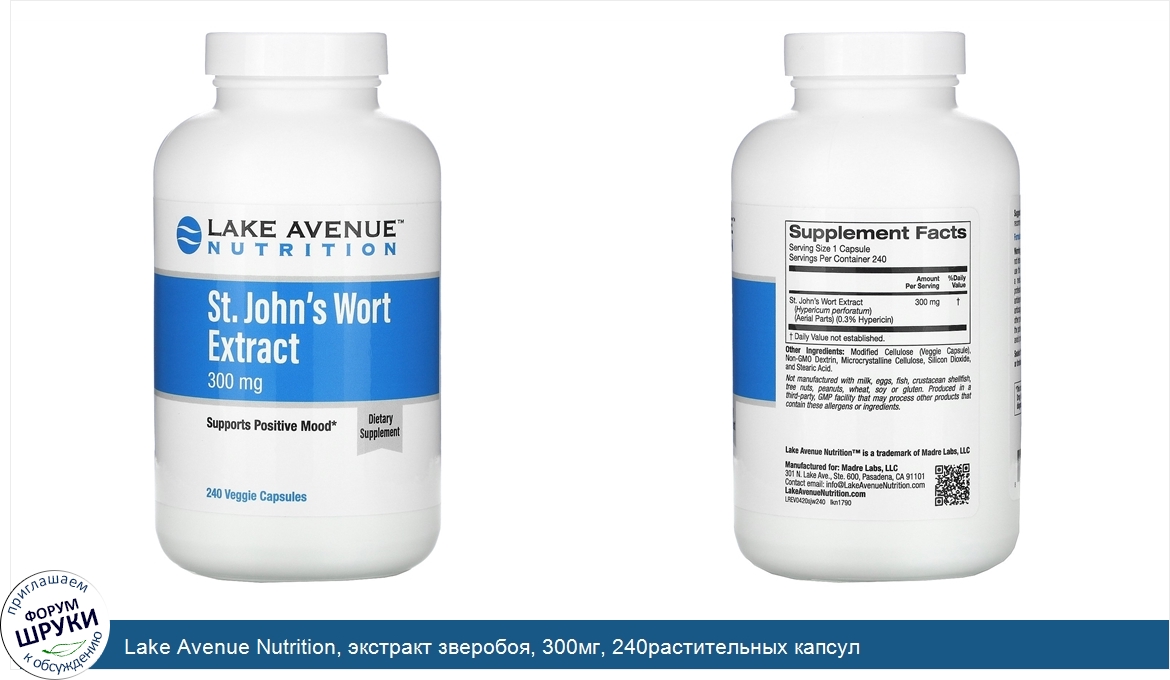 ru Lake Avenue Nutrition, экстракт зверобоя, 300мг, 240растительных капсул
