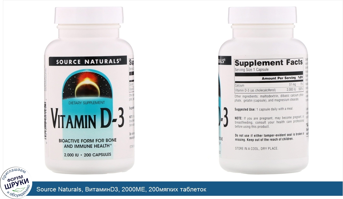 Друзья, если у вас есть отзыв/дополнение/комментарий/вопрос относительно Source Naturals, ВитаминD3, 2000МЕ, 200мягких таблеток - напишите его ответом в эту тему (это будет полезно всему сообществу в целом и вам в отдельности).
