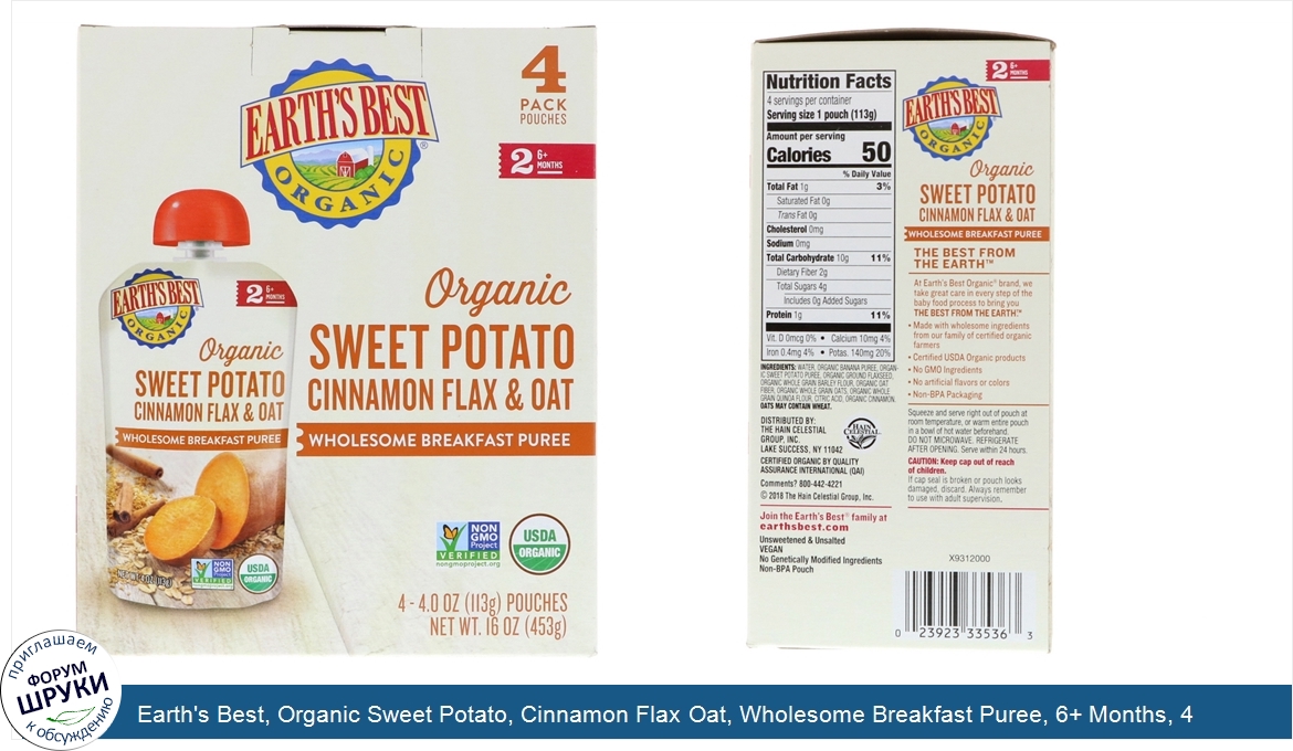 Друзья, если у вас есть отзыв/дополнение/комментарий/вопрос относительно Earth's Best, Organic Sweet Potato, Cinnamon Flax Oat, Wholesome Breakfast Puree, 6+ Months, 4 Pouches, 4.0 oz (113 g) Each - напишите его ответом в эту тему (это будет полезно всему сообществу в целом и вам в отдельности).