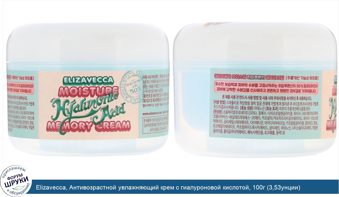 Elizavecca, Антивозрастной увлажняющий крем с гиалуроновой кислотой, 100г (3,53унции)