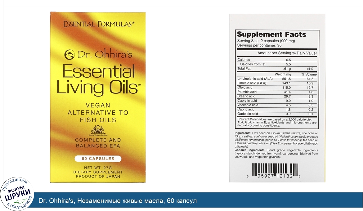 Замена рыбьему жиру. Сертифицированный вегетарианский продукт. Цельные сбалансированные незаменимые жирные кислоты. Пищевая добавка. Разработанные отмеченным наградами ученым, доктором Ичиро Оххирой, незаменимые ...