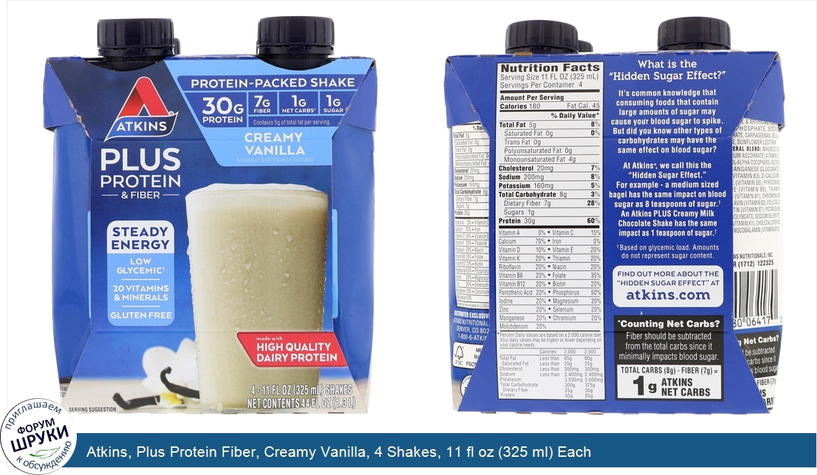 Друзья, если у вас есть отзыв/дополнение/комментарий/вопрос относительно Atkins, Plus Protein Fiber, Creamy Vanilla, 4 Shakes, 11 fl oz (325 ml) Each - напишите его ответом в эту тему (это будет полезно всему сообществу в целом и вам в отдельности).