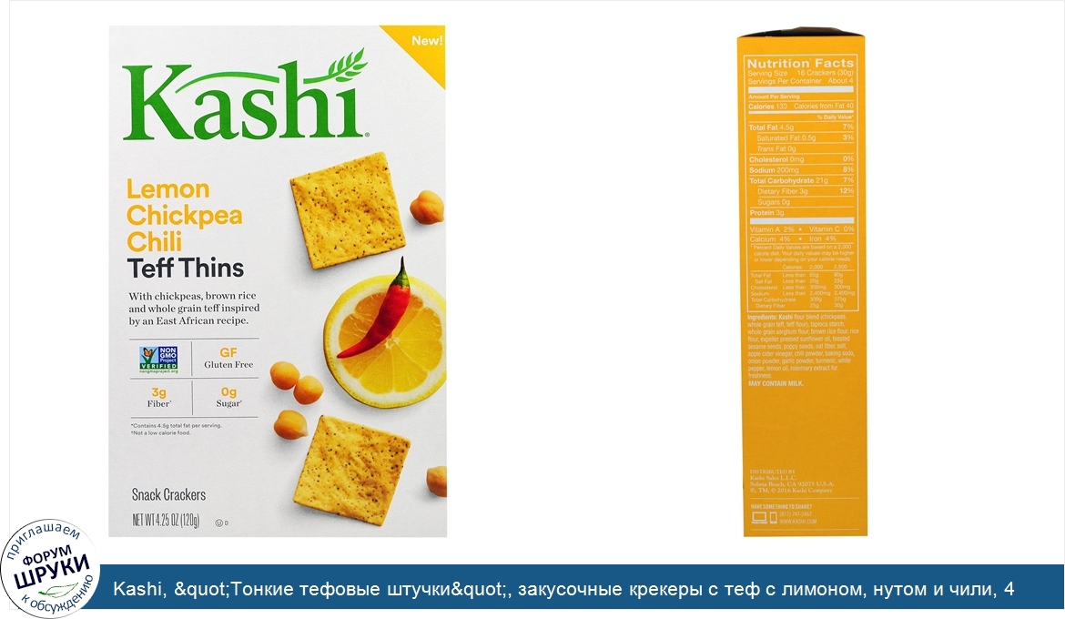 Друзья, если у вас есть отзыв/дополнение/комментарий/вопрос относительно Kashi, "Тонкие тефовые штучки", закусочные крекеры с теф с лимоном, нутом и чили, 4,25 унции (120 г) - напишите его ответом в эту тему (это будет полезно всему сообществу в целом и вам в отдельности).