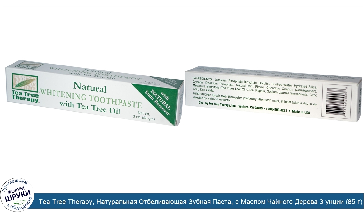 Друзья, если у вас есть отзыв/дополнение/комментарий/вопрос относительно Tea Tree Therapy, Натуральная Отбеливающая Зубная Паста, с Маслом Чайного Дерева 3 унции (85 г) - напишите его ответом в эту тему (это будет полезно всему сообществу в целом и вам в отдельности).