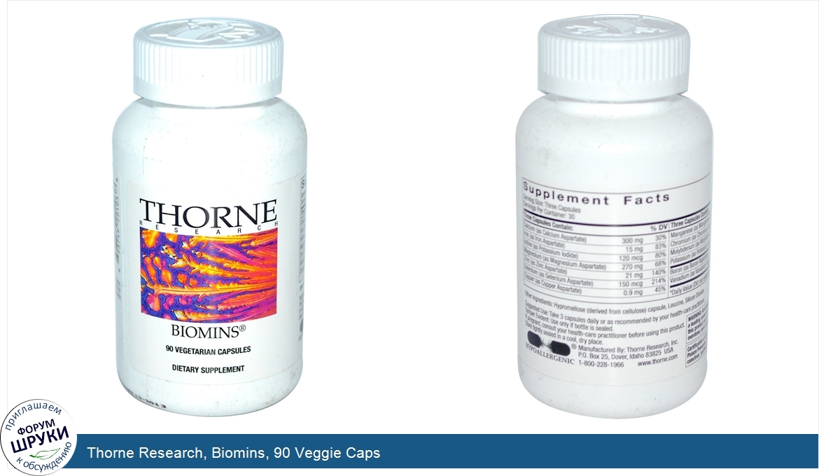 Друзья, если у вас есть отзыв/дополнение/комментарий/вопрос относительно Thorne Research, Biomins, 90 Veggie Caps - напишите его ответом в эту тему (это будет полезно всему сообществу в целом и вам в отдельности).