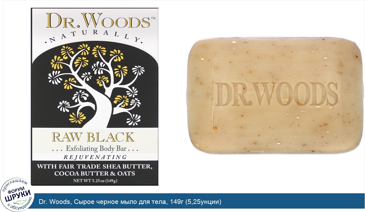 Dr. Woods, Сырое черное мыло для тела, 149г (5,25унции)