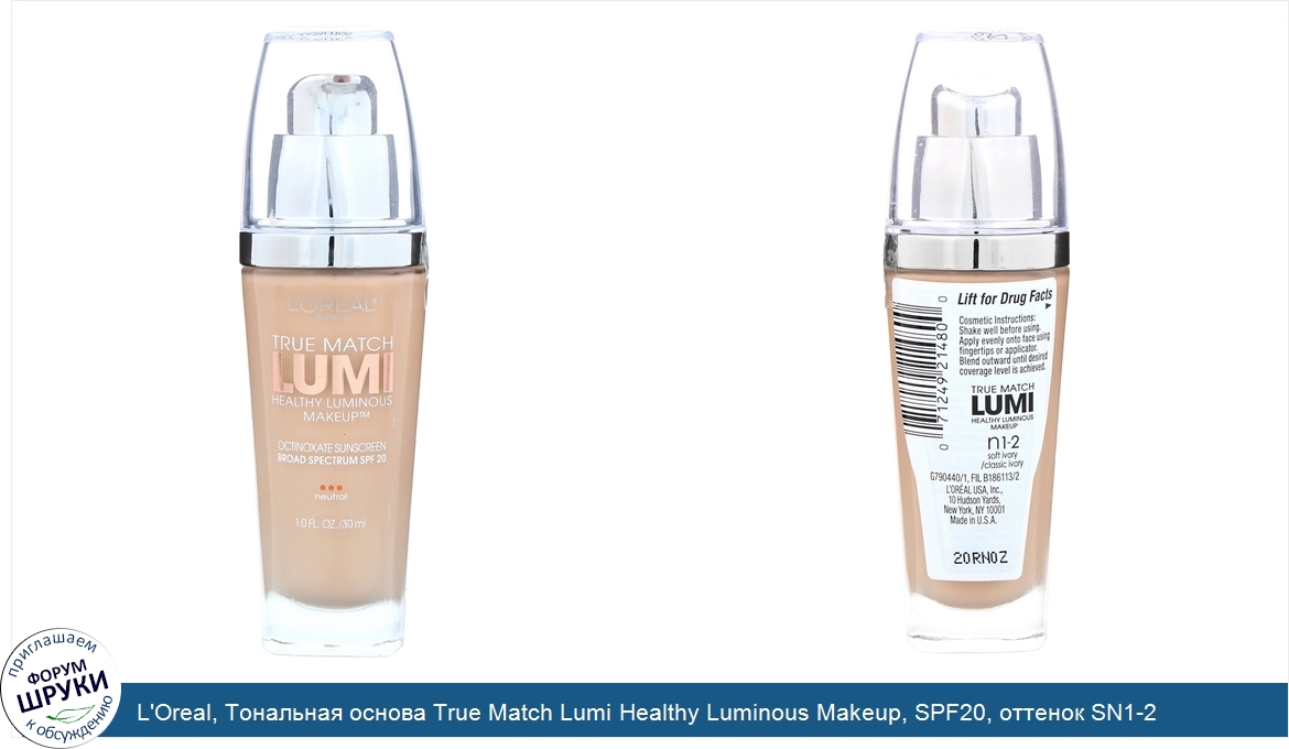 Друзья, если у вас есть отзыв/дополнение/комментарий/вопрос относительно L'Oreal, Тональная основа True Match Lumi Healthy Luminous Makeup, SPF20, оттенок SN1-2 мягкая/классическая слоновая кость, 30мл - напишите его ответом в эту тему (это будет полезно всему сообществу в целом и вам в отдельности).