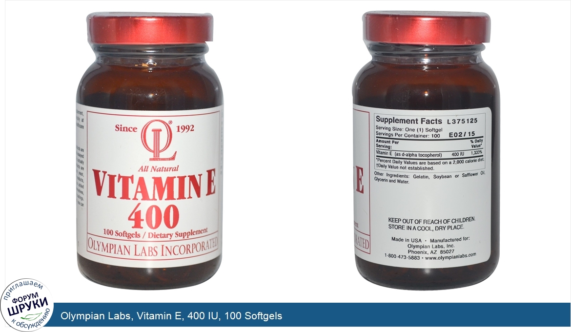 Друзья, если у вас есть отзыв/дополнение/комментарий/вопрос относительно Olympian Labs, Vitamin E, 400 IU, 100 Softgels - напишите его ответом в эту тему (это будет полезно всему сообществу в целом и вам в отдельности).