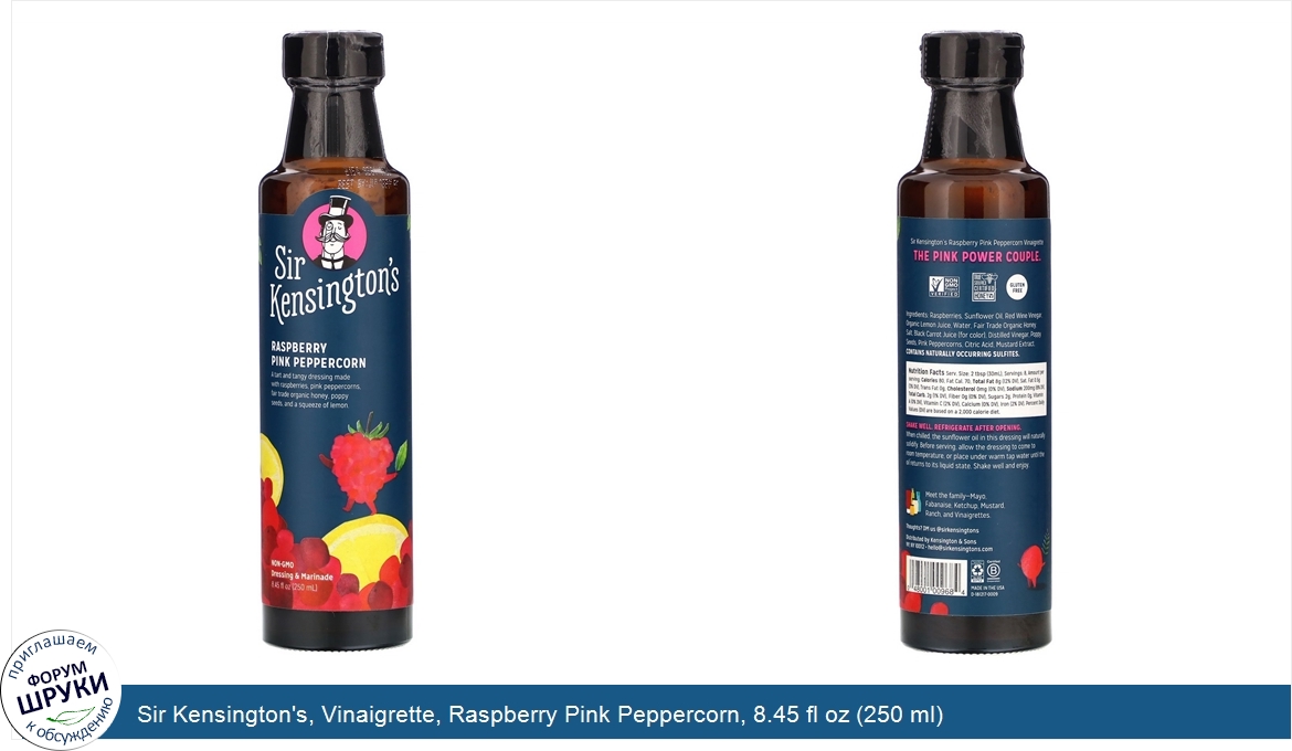 [DESCRIPT]Dressing Marinade. Non GMO Project Verified. The Source Certified Honey. Gluten Free. Certified B Corporation. A tart and tangy dressing made with raspberries, pink peppercorns, fair trade organic honey, poppy seeds, and a squeeze of lemon. Sir Kensington's raspberry pink peppercorn vinaigrette the pink power couple.[/DESCRIPT]... (описание дополняется)