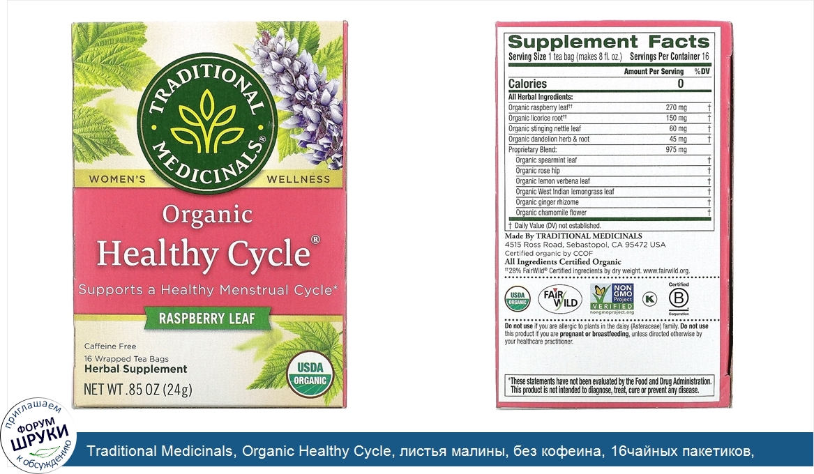 Друзья, если у вас есть отзыв/дополнение/комментарий/вопрос относительно Traditional Medicinals, Organic Healthy Cycle, листья малины, без кофеина, 16чайных пакетиков, 24г (0,85унции) - напишите его ответом в эту тему (это будет полезно всему сообществу в целом и вам в отдельности).