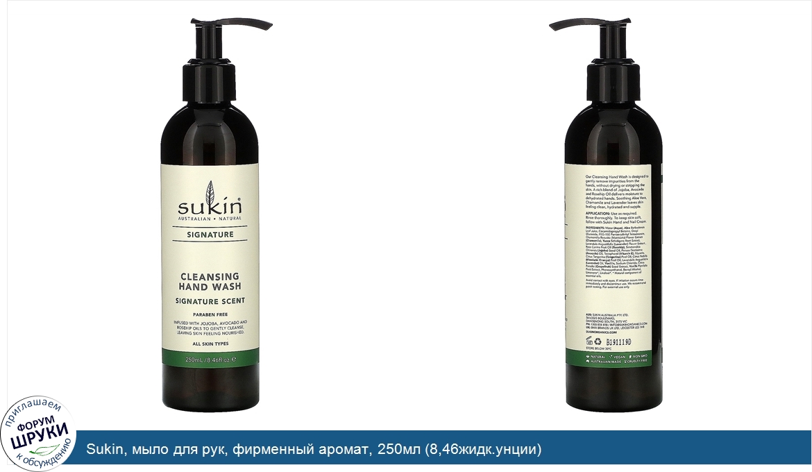 Друзья, если у вас есть отзыв/дополнение/комментарий/вопрос относительно Sukin, мыло для рук, фирменный аромат, 250мл (8,46жидк.унции) - напишите его ответом в эту тему (это будет полезно всему сообществу в целом и вам в отдельности).