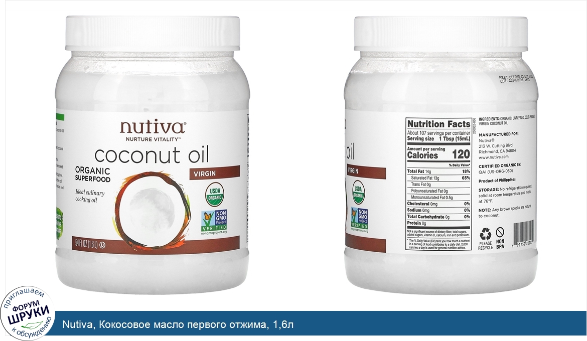 Друзья, если у вас есть отзыв/дополнение/комментарий/вопрос относительно Nutiva, Кокосовое масло первого отжима, 1,6л - напишите его ответом в эту тему (это будет полезно всему сообществу в целом и вам в отдельности).