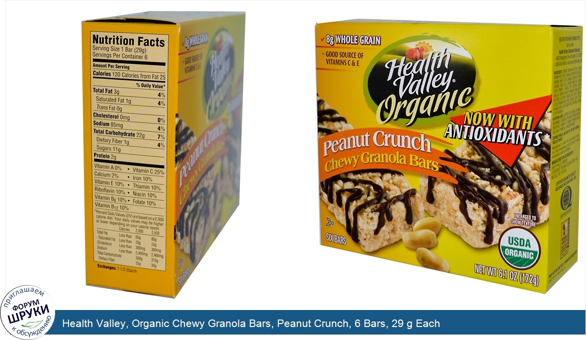 Друзья, если у вас есть отзыв/дополнение/комментарий/вопрос относительно Health Valley, Organic Chewy Granola Bars, Peanut Crunch, 6 Bars, 29 g Each - напишите его ответом в эту тему (это будет полезно всему сообществу в целом и вам в отдельности).