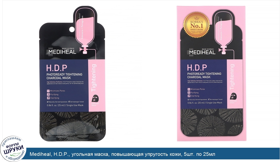 Mediheal, H.D.P., угольная маска, повышающая упругость кожи, 5шт. по 25мл
