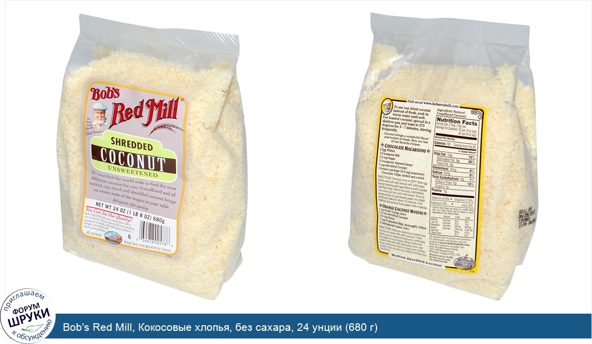 Друзья, если у вас есть отзыв/дополнение/комментарий/вопрос относительно Bob's Red Mill, Кокосовые хлопья, без сахара, 24 унции (680 г) - напишите его ответом в эту тему (это будет полезно всему сообществу в целом и вам в отдельности).