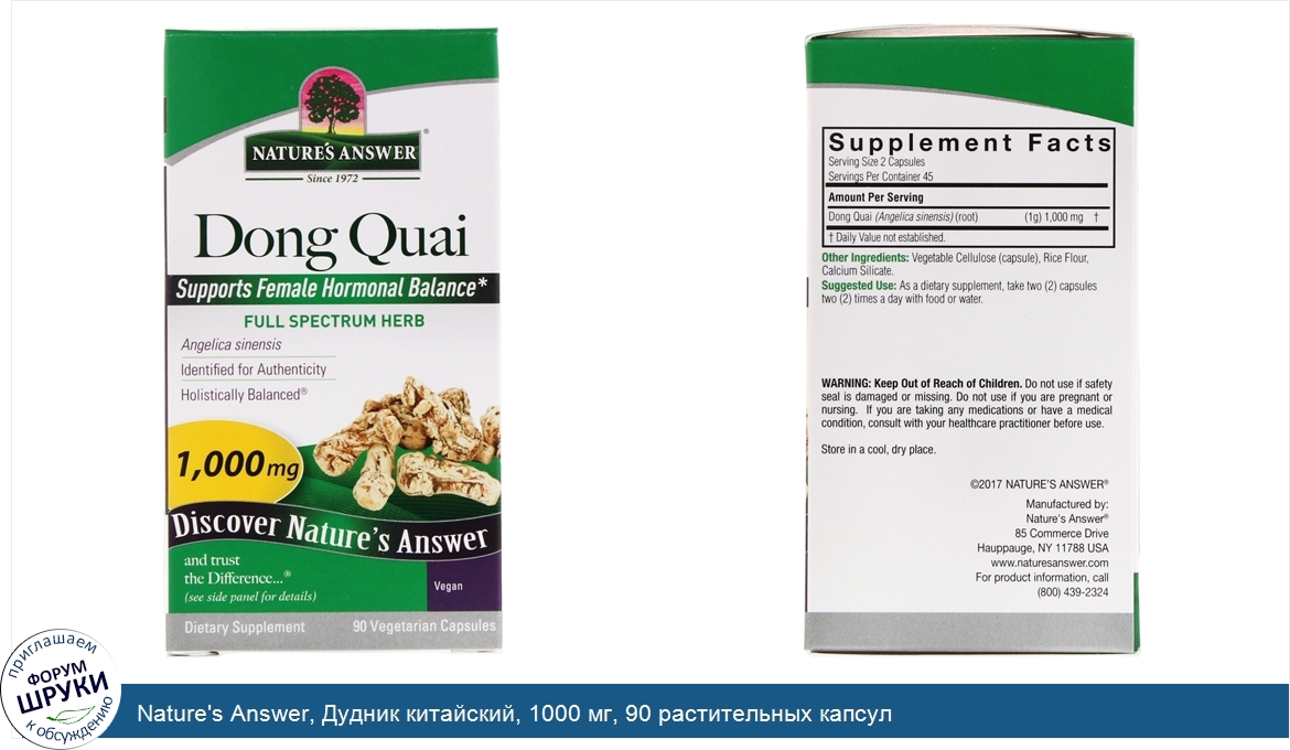 Друзья, если у вас есть отзыв/дополнение/комментарий/вопрос относительно Nature's Answer, Дудник китайский, 1000 мг, 90 растительных капсул - напишите его ответом в эту тему (это будет полезно всему сообществу в целом и вам в отдельности).