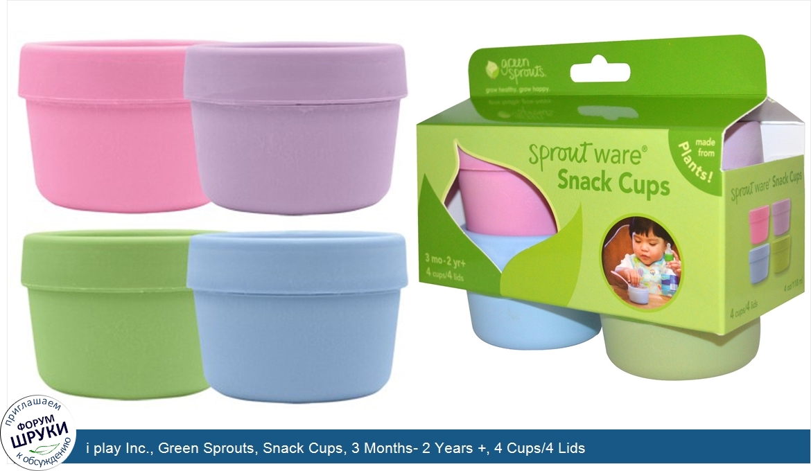 i play Inc., Green Sprouts, Snack Cups, 3 Months- 2 Years +, 4 Cups/4 Lids