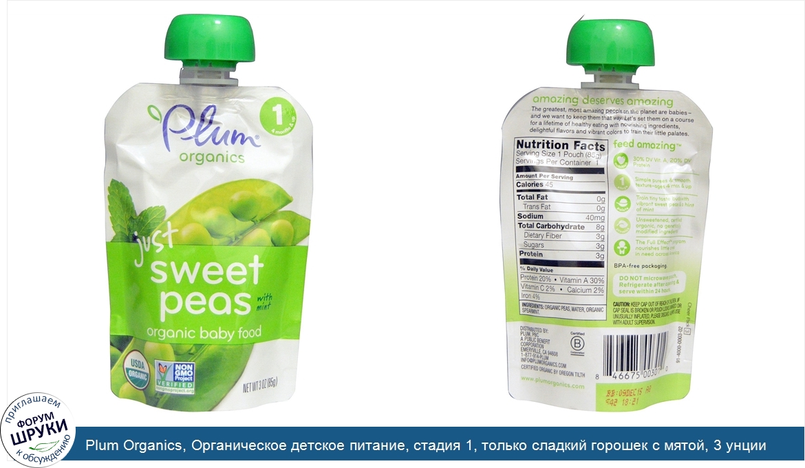 Друзья, если у вас есть отзыв/дополнение/комментарий/вопрос относительно Plum Organics, Органическое детское питание, стадия 1, только сладкий горошек с мятой, 3 унции (85 г) - напишите его ответом в эту тему (это будет полезно всему сообществу в целом и вам в отдельности).