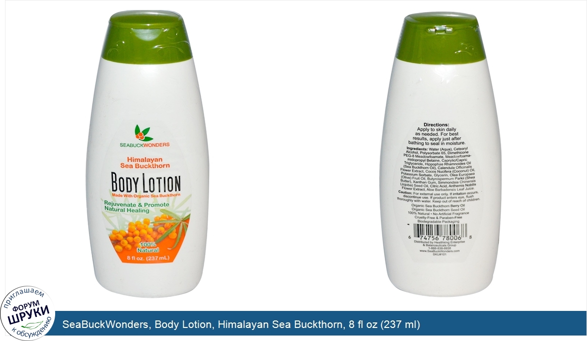 Друзья, если у вас есть отзыв/дополнение/комментарий/вопрос относительно SeaBuckWonders, Body Lotion, Himalayan Sea Buckthorn, 8 fl oz (237 ml) - напишите его ответом в эту тему (это будет полезно всему сообществу в целом и вам в отдельности).