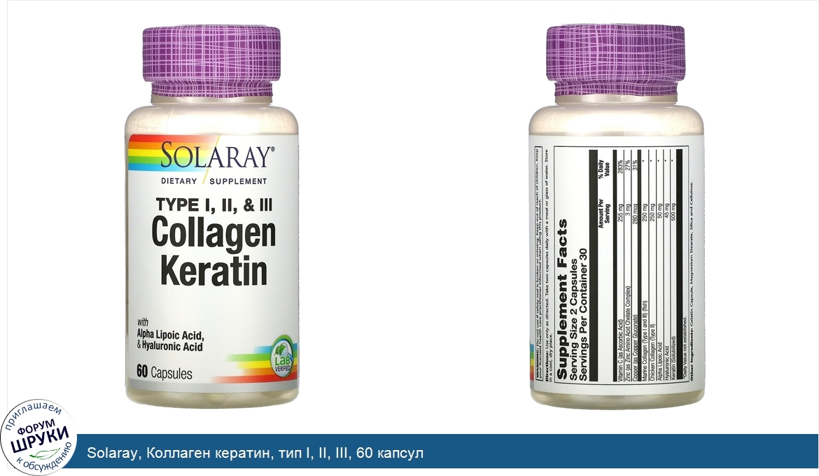 Друзья, если у вас есть отзыв/дополнение/комментарий/вопрос относительно Solaray, Коллаген кератин, тип I, II, III, 60 капсул - напишите его ответом в эту тему (это будет полезно всему сообществу в целом и вам в отдельности).