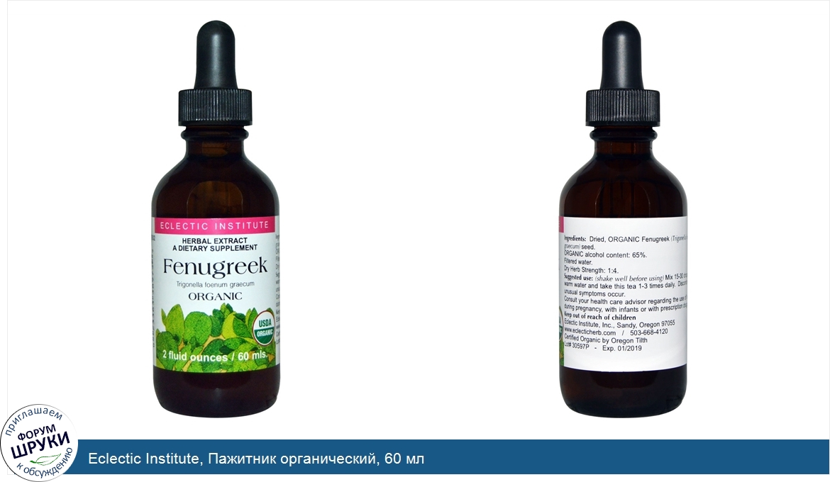 Eclectic Institute, Пажитник органический, 60 мл