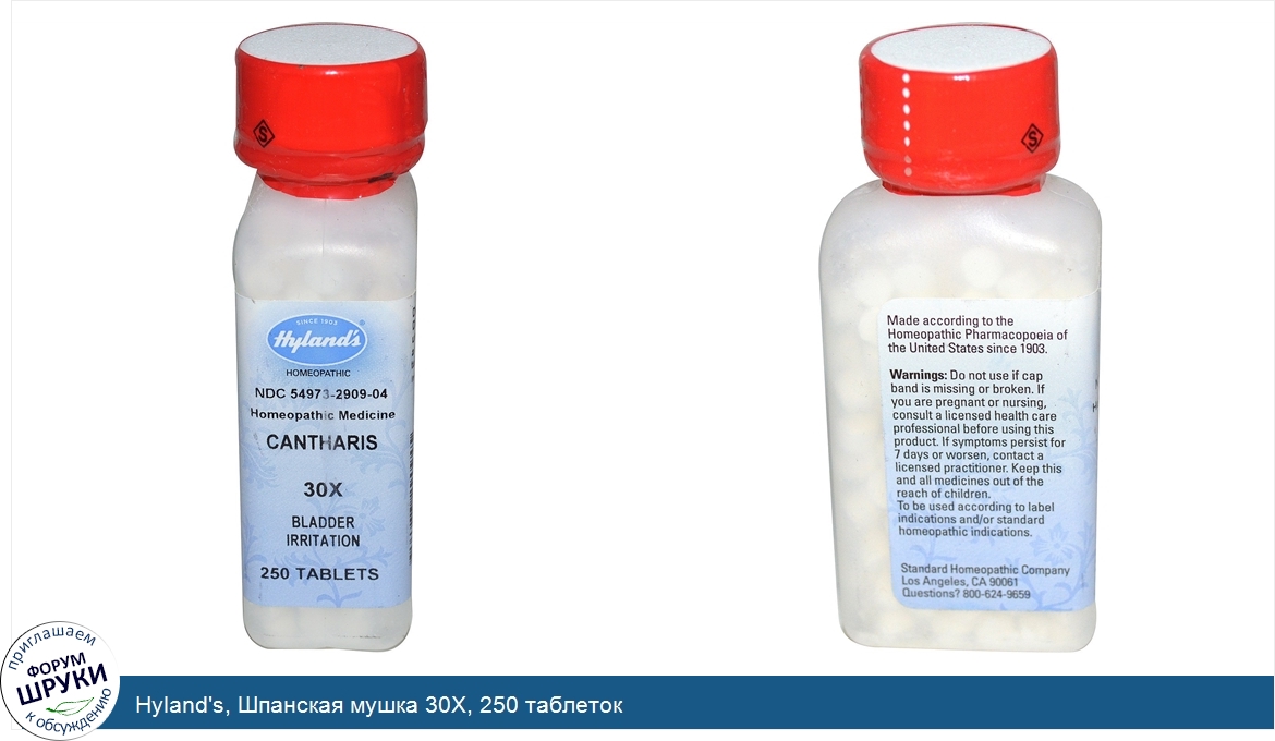 Друзья, если у вас есть отзыв/дополнение/комментарий/вопрос относительно Hyland's, Шпанская мушка 30X, 250 таблеток - напишите его ответом в эту тему (это будет полезно всему сообществу в целом и вам в отдельности).