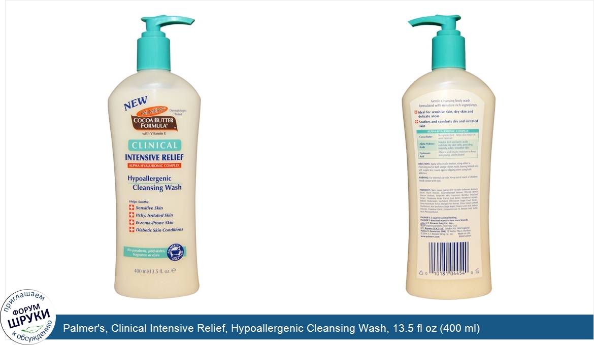 Друзья, если у вас есть отзыв/дополнение/комментарий/вопрос относительно Palmer's, Clinical Intensive Relief, Hypoallergenic Cleansing Wash, 13.5 fl oz (400 ml) - напишите его ответом в эту тему (это будет полезно всему сообществу в целом и вам в отдельности).