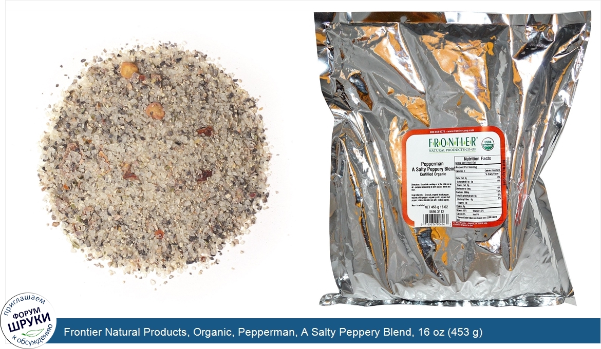 Друзья, если у вас есть отзыв/дополнение/комментарий/вопрос относительно Frontier Natural Products, Organic, Pepperman, A Salty Peppery Blend, 16 oz (453 g) - напишите его ответом в эту тему (это будет полезно всему сообществу в целом и вам в отдельности).