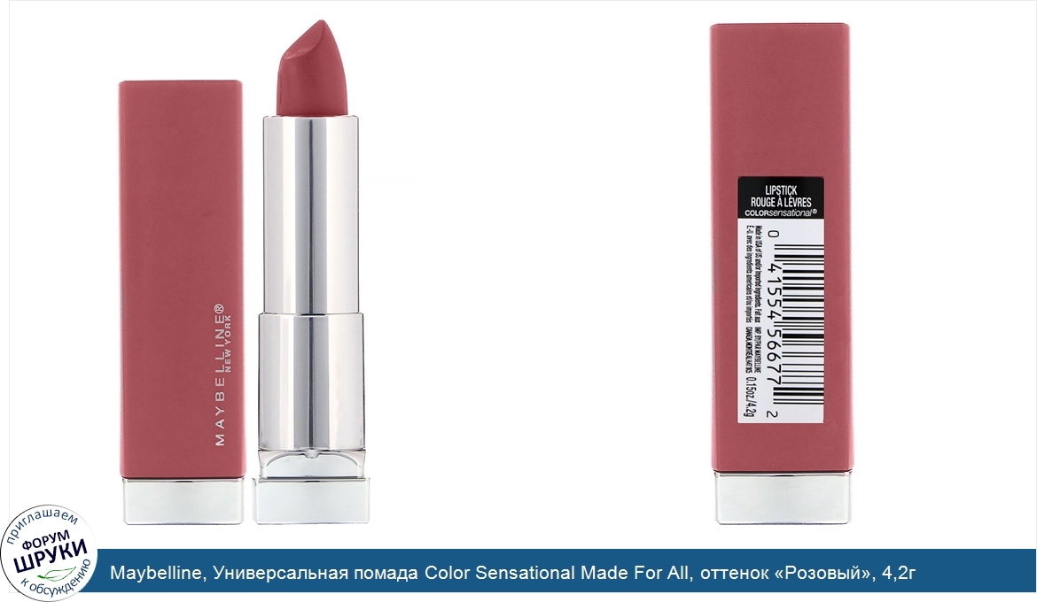 Друзья, если у вас есть отзыв/дополнение/комментарий/вопрос относительно Maybelline, Универсальная помада Color Sensational Made For All, оттенок «Розовый», 4,2г - напишите его ответом в эту тему (это будет полезно всему сообществу в целом и вам в отдельности).