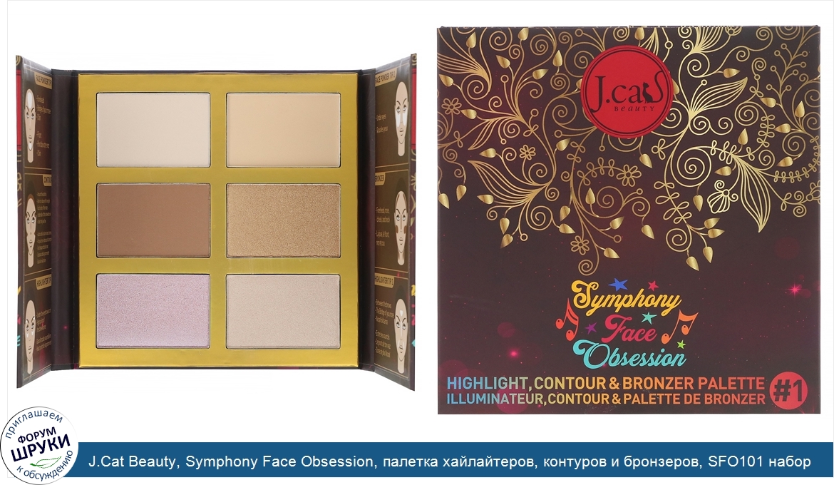 J.Cat Beauty, Symphony Face Obsession, палетка хайлайтеров, контуров и бронзеров, SFO101 набор №1, светлые и средние оттенки, 27,5г