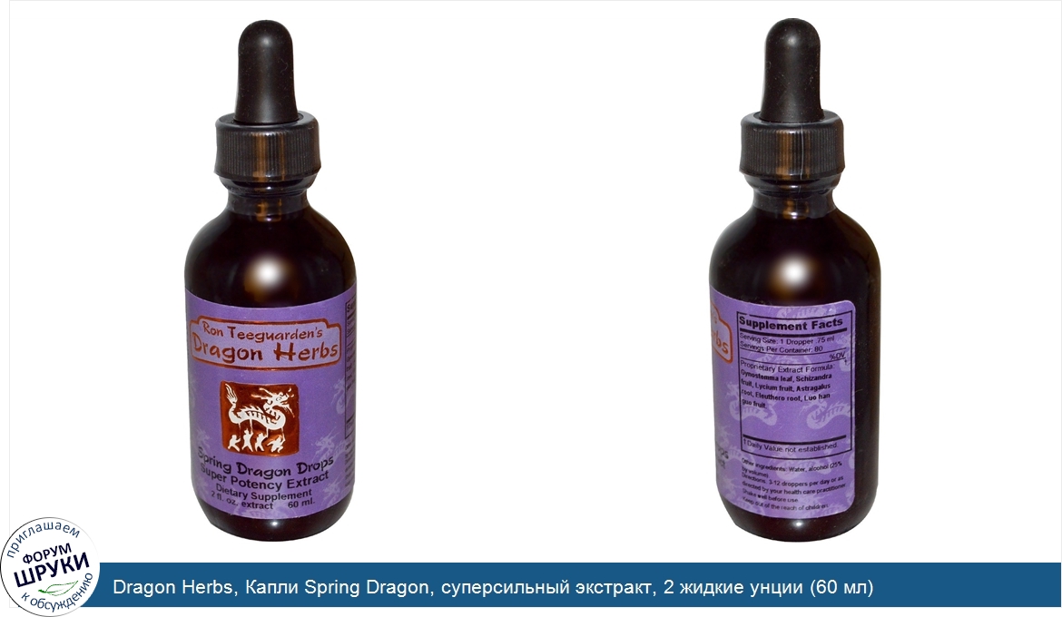 Друзья, если у вас есть отзыв/дополнение/комментарий/вопрос относительно Dragon Herbs, Капли Spring Dragon, суперсильный экстракт, 2 жидкие унции (60 мл) - напишите его ответом в эту тему (это будет полезно всему сообществу в целом и вам в отдельности).