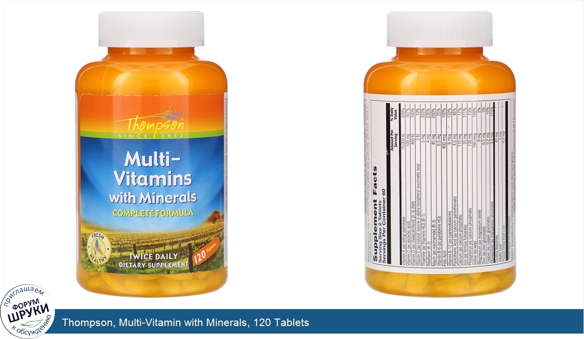Друзья, если у вас есть отзыв/дополнение/комментарий/вопрос относительно Thompson, Multi-Vitamin with Minerals, 120 Tablets - напишите его ответом в эту тему (это будет полезно всему сообществу в целом и вам в отдельности).