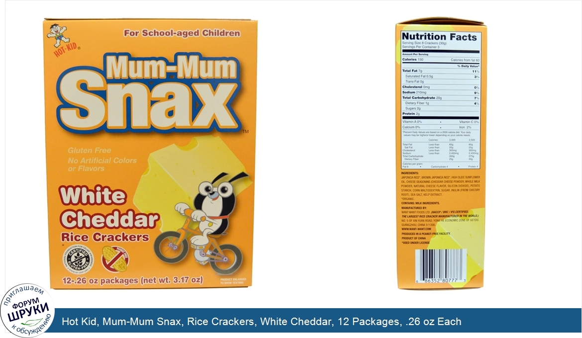 Друзья, если у вас есть отзыв/дополнение/комментарий/вопрос относительно Hot Kid, Mum-Mum Snax, Rice Crackers, White Cheddar, 12 Packages, .26 oz Each - напишите его ответом в эту тему (это будет полезно всему сообществу в целом и вам в отдельности).