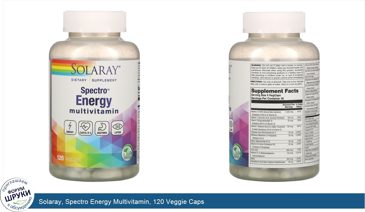 Друзья, если у вас есть отзыв/дополнение/комментарий/вопрос относительно Solaray, Spectro Energy Multivitamin, 120 Veggie Caps - напишите его ответом в эту тему (это будет полезно всему сообществу в целом и вам в отдельности).