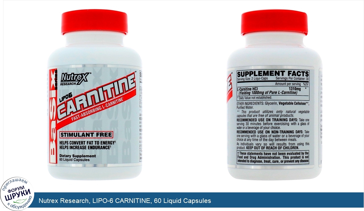 [DESCRIPT]Basix Series. Fast-Absorbing L-Carnitine. Stimulant Free. Helps Convert Fat to Energy. Helps Increase Endurance. Dietary Supplement. L-Carnitine plays an important metabolic role in fat burning and energy production. Scientific research has demonstrated that L-Carnitine assists your body in converting fat to energy. L-Carnitine helps to tap into your body's fat supply by providing support to have fatty acids transport to your muscles where the fat can be burned as energy. This process can aid in weight loss and improve athletic performance such as increased endurance. L-Carnitine is not a stimulant and can easily be combined with other diet products. To optimize results LIPO- 6 Carnitine provides L-Carnitine in fast-absorbing liquid capsules.[/DESCRIPT]... (описание дополняется)