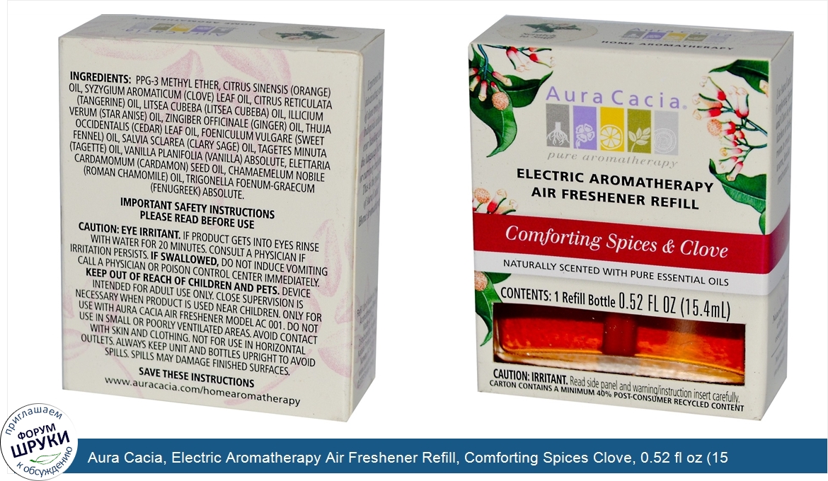 Друзья, если у вас есть отзыв/дополнение/комментарий/вопрос относительно Aura Cacia, Electric Aromatherapy Air Freshener Refill, Comforting Spices Clove, 0.52 fl oz (15.4 ml) - напишите его ответом в эту тему (это будет полезно всему сообществу в целом и вам в отдельности).