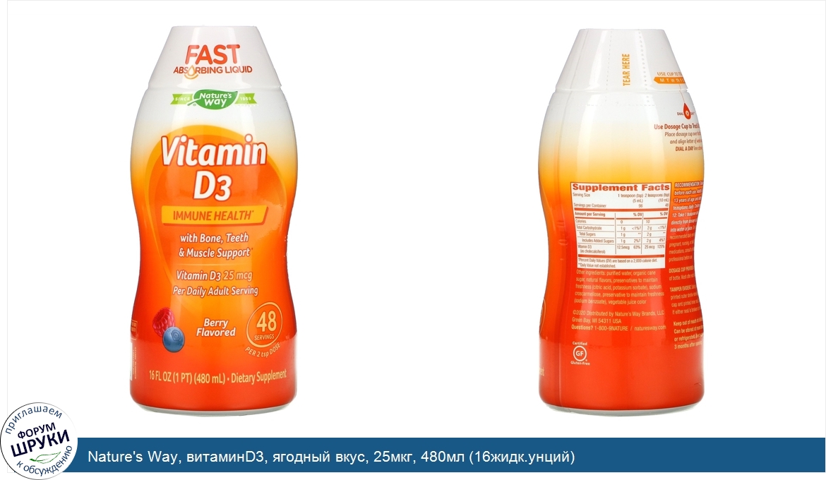 Друзья, если у вас есть отзыв/дополнение/комментарий/вопрос относительно Nature's Way, витаминD3, ягодный вкус, 25мкг, 480мл (16жидк.унций) - напишите его ответом в эту тему (это будет полезно всему сообществу в целом и вам в отдельности).