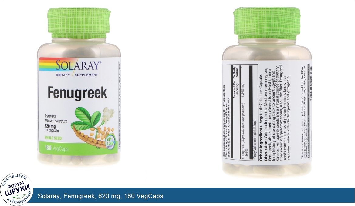 Друзья, если у вас есть отзыв/дополнение/комментарий/вопрос относительно Solaray, Fenugreek, 620 mg, 180 VegCaps - напишите его ответом в эту тему (это будет полезно всему сообществу в целом и вам в отдельности).
