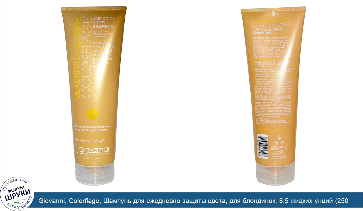 Giovanni, Colorflage, Шампунь для ежедневно защиты цвета, для блондинок, 8,5 жидких унций (250 мл)
