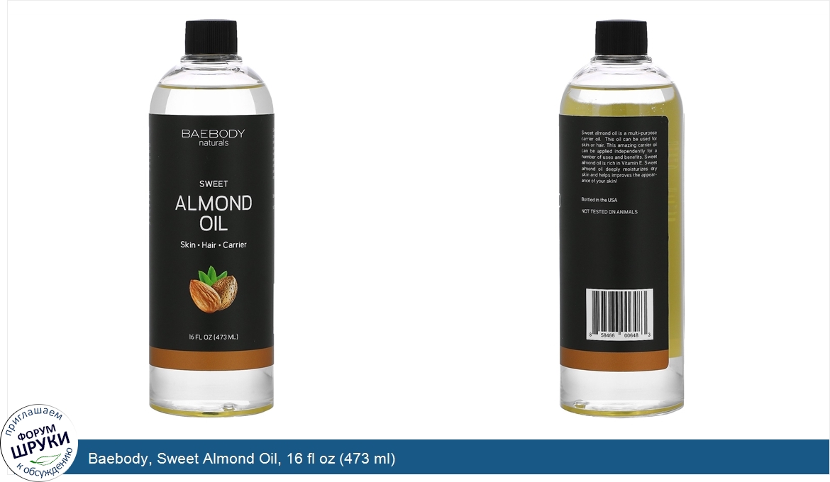 Друзья, если у вас есть отзыв/дополнение/комментарий/вопрос относительно Baebody, Sweet Almond Oil, 16 fl oz (473 ml) - напишите его ответом в эту тему (это будет полезно всему сообществу в целом и вам в отдельности).