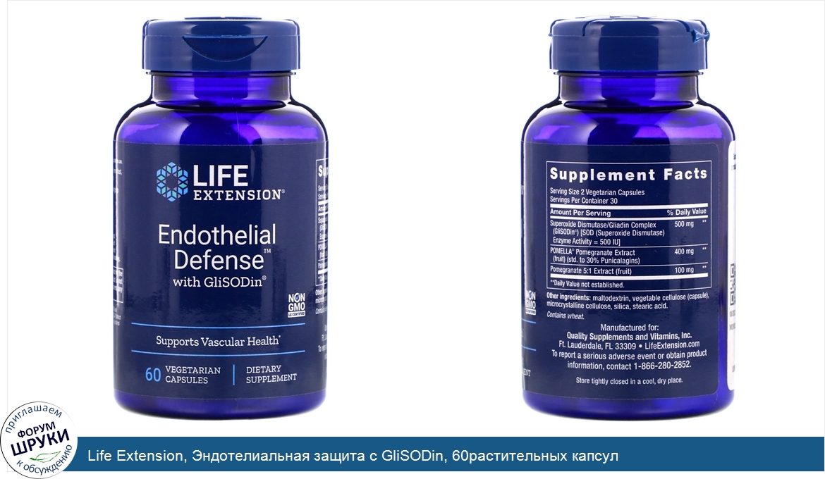 Life Extension, Эндотелиальная защита с GliSODin, 60растительных капсул