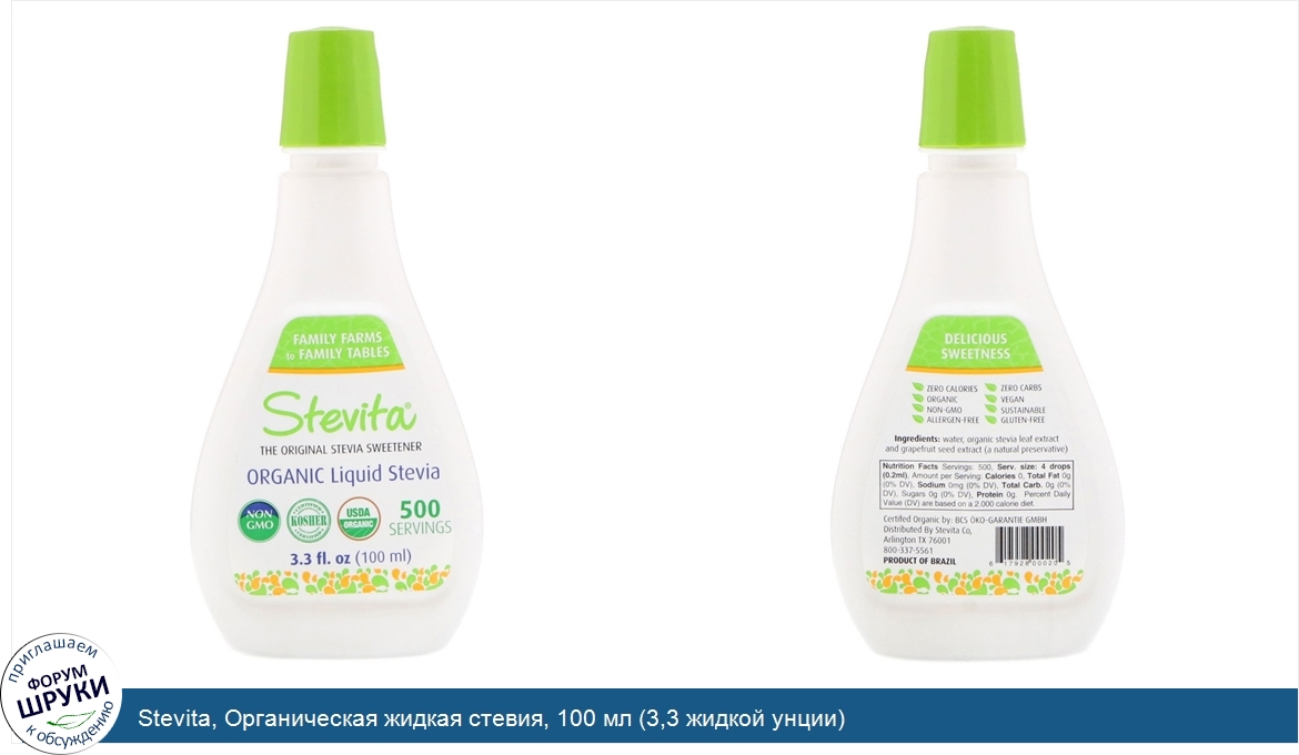 Друзья, если у вас есть отзыв/дополнение/комментарий/вопрос относительно Stevita, Органическая жидкая стевия, 100 мл (3,3 жидкой унции) - напишите его ответом в эту тему (это будет полезно всему сообществу в целом и вам в отдельности).