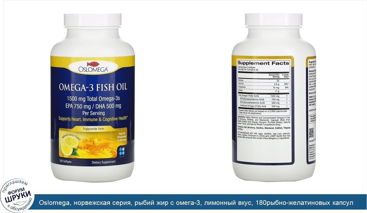 Друзья, если у вас есть отзыв/дополнение/комментарий/вопрос относительно Oslomega, норвежская серия, рыбий жир с омега-3, лимонный вкус, 180рыбно-желатиновых капсул - напишите его ответом в эту тему (это будет полезно всему сообществу в целом и вам в отдельности).