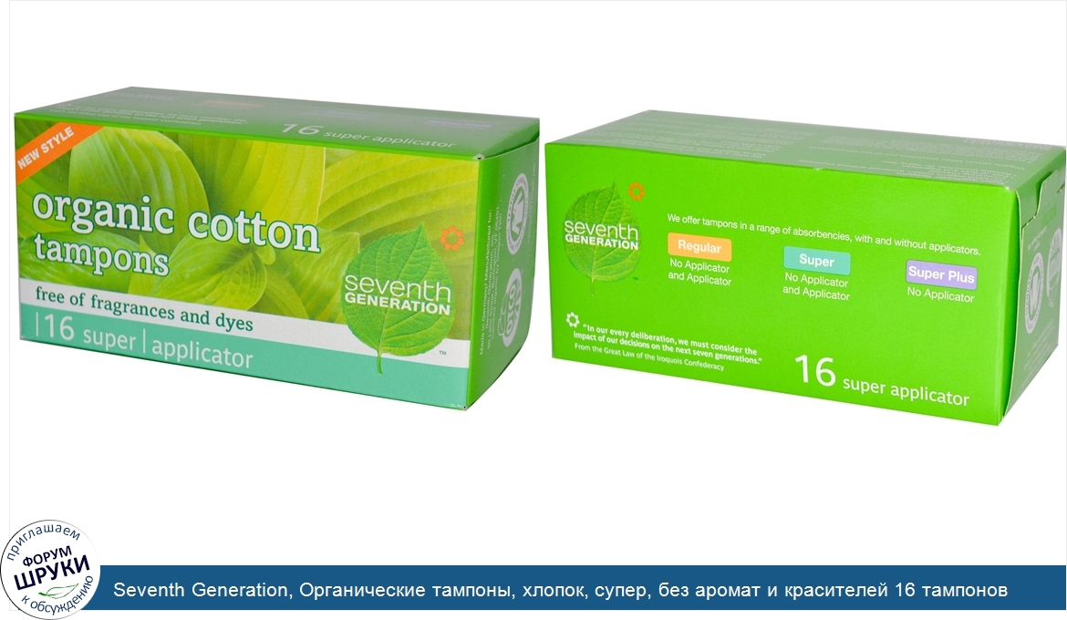 Друзья, если у вас есть отзыв/дополнение/комментарий/вопрос относительно Seventh Generation, Органические тампоны, хлопок, супер, без аромат и красителей 16 тампонов - напишите его ответом в эту тему (это будет полезно всему сообществу в целом и вам в отдельности).