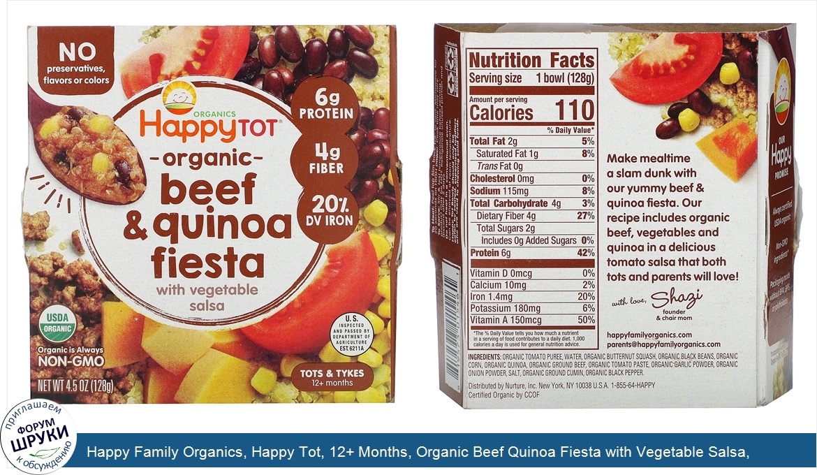 Друзья, если у вас есть отзыв/дополнение/комментарий/вопрос относительно Happy Family Organics, Happy Tot, 12+ Months, Organic Beef Quinoa Fiesta with Vegetable Salsa, 4.5 oz (128 g) - напишите его ответом в эту тему (это будет полезно всему сообществу в целом и вам в отдельности).