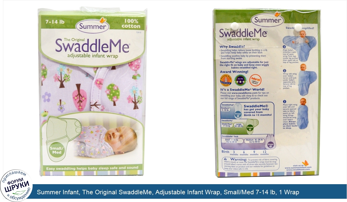 Друзья, если у вас есть отзыв/дополнение/комментарий/вопрос относительно Summer Infant, The Original SwaddleMe, Adjustable Infant Wrap, Small/Med 7-14 lb, 1 Wrap - напишите его ответом в эту тему (это будет полезно всему сообществу в целом и вам в отдельности).
