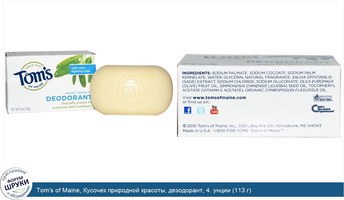 ru Tom's of Maine, Кусочек природной красоты, дезодорант, 4. унции (113 г)